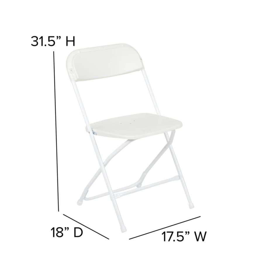 White folding chairs are a necessity for any graduation celebration, birthday party, or community event, or backyard BBQ. These white folding chairs look great indoors or outdoors for every occasion. Our white plastic chairs are also lightweight, easy to carry, and set up!